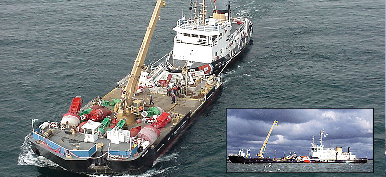 Notch in the stern to accept the bow of 140 ft WTGB Icebreaker/Tugboat